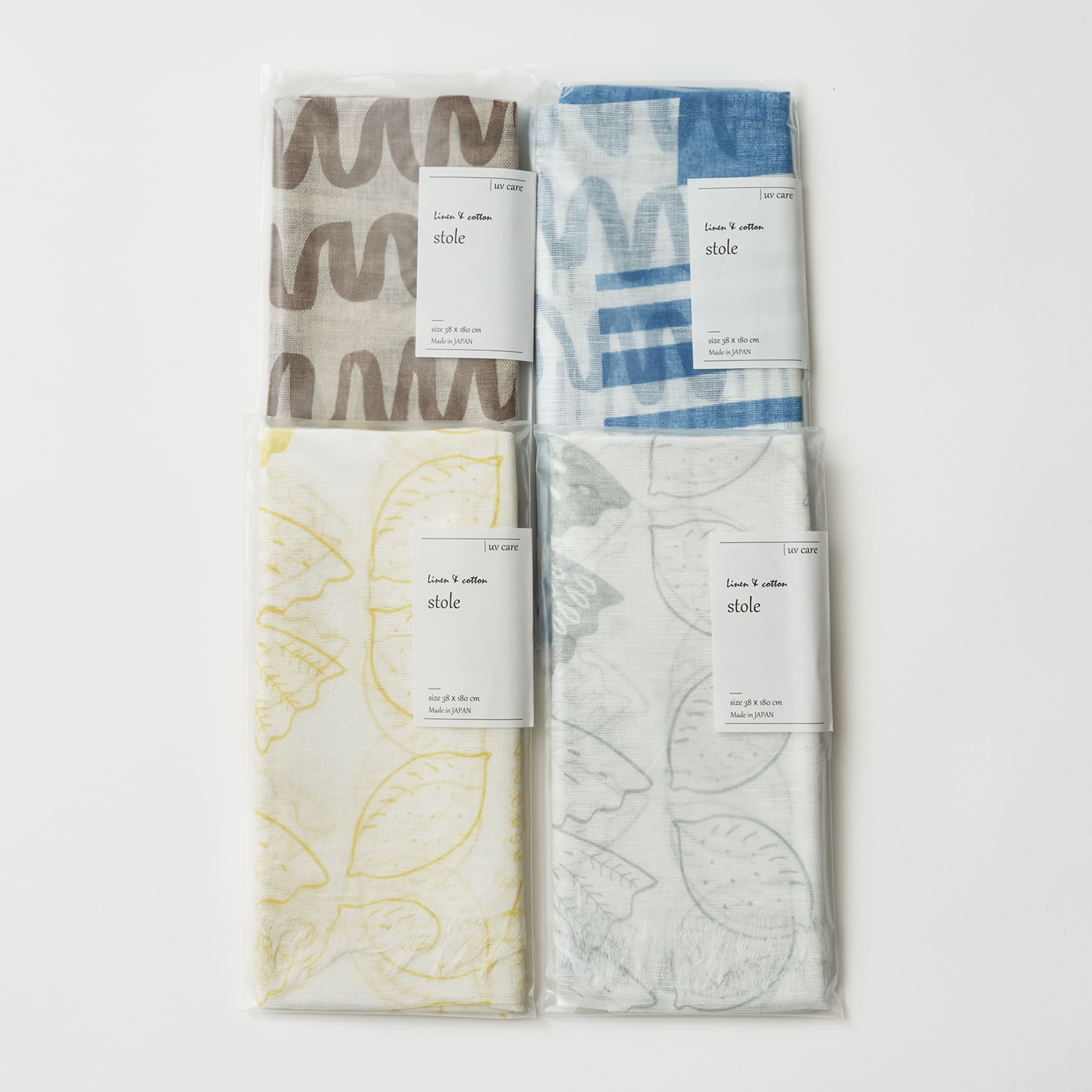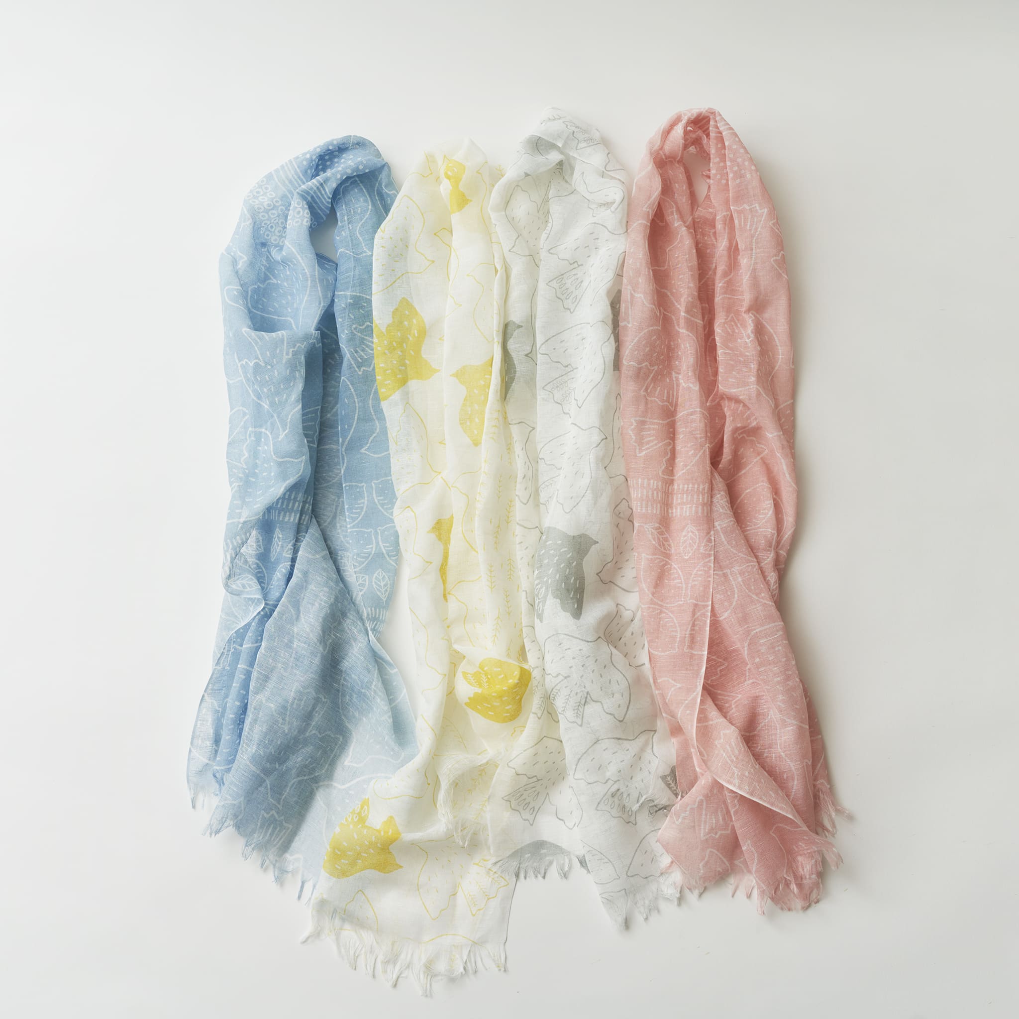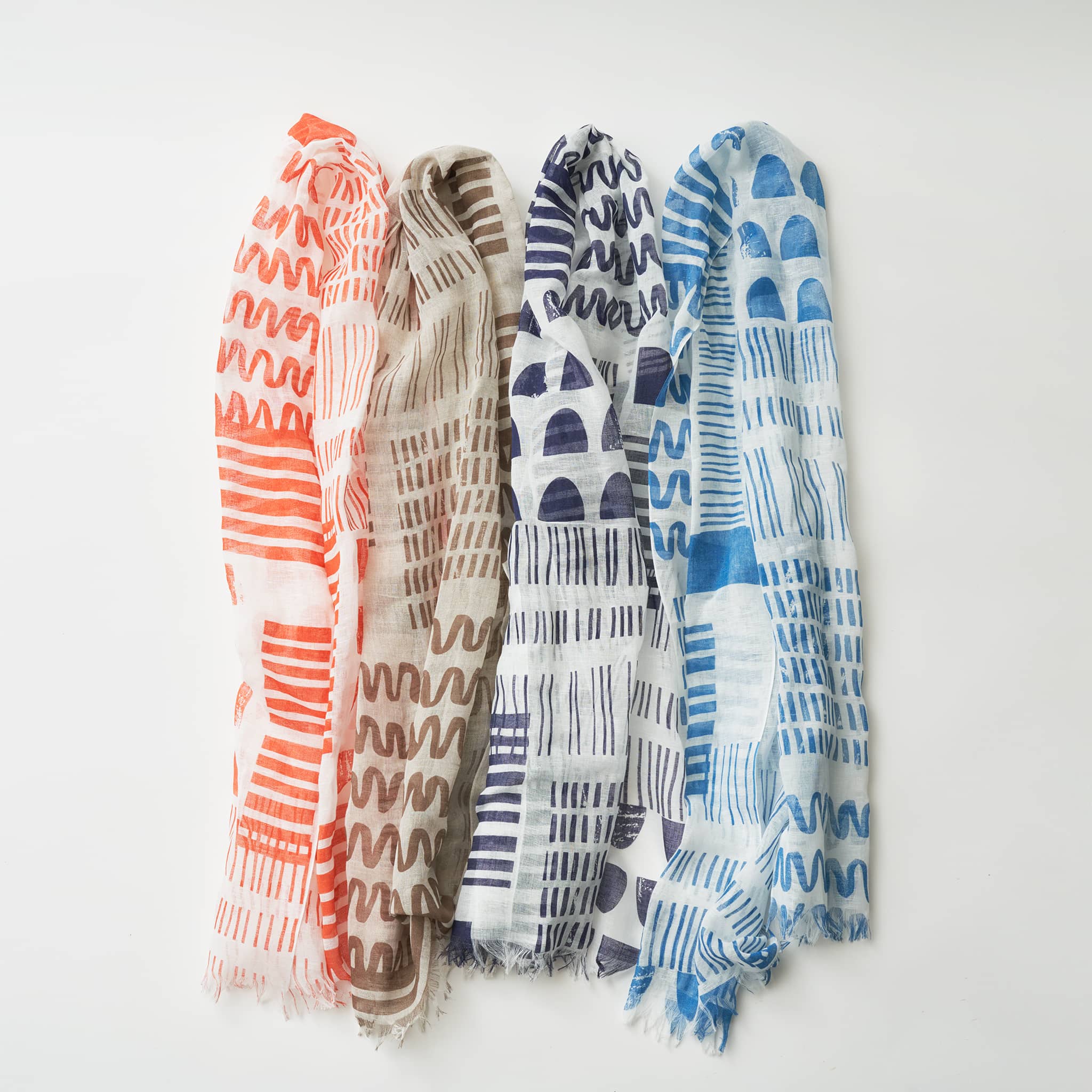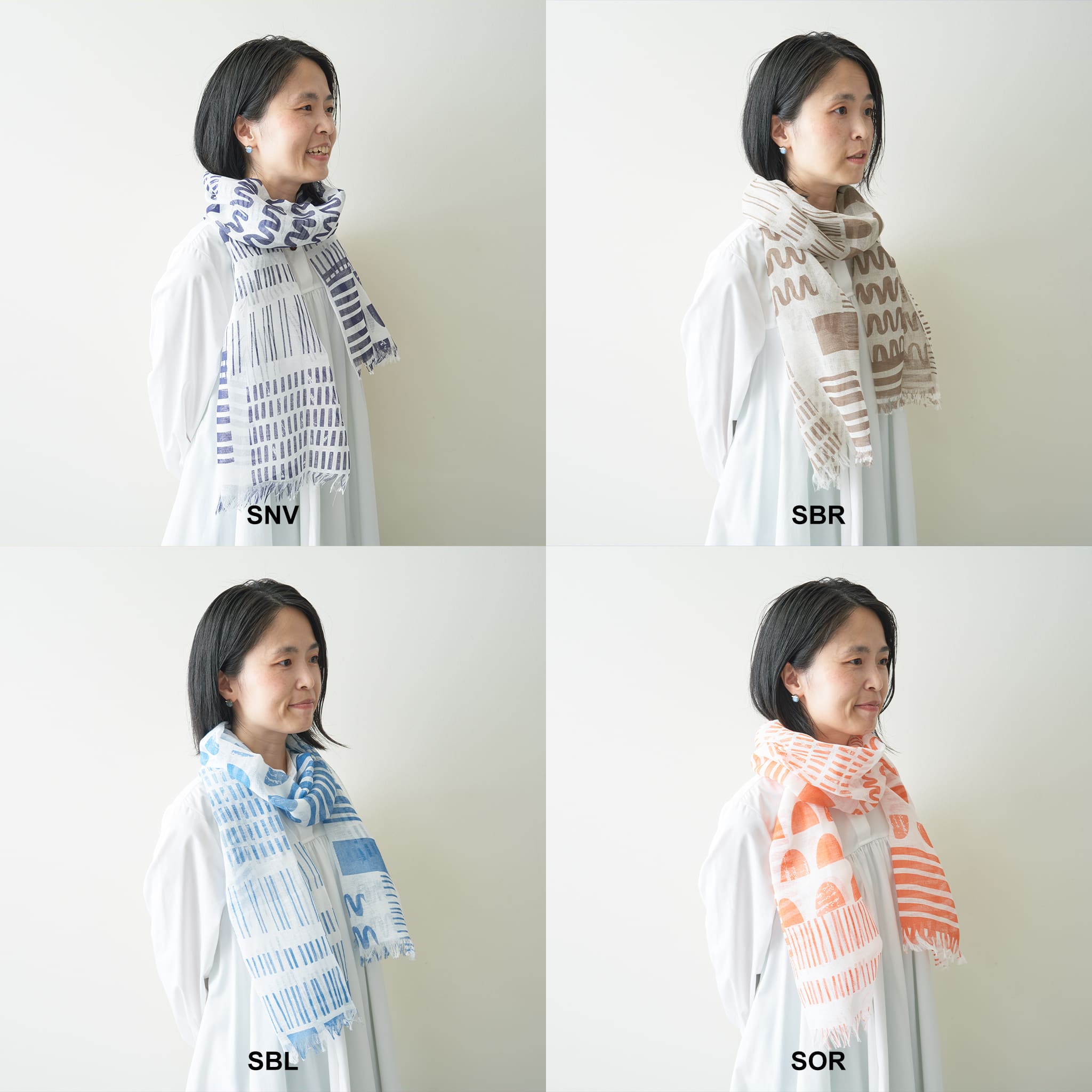 曲線や直線など幾何学模様で構成されたデザインは 襟元にサッと巻くだけでサマになります。