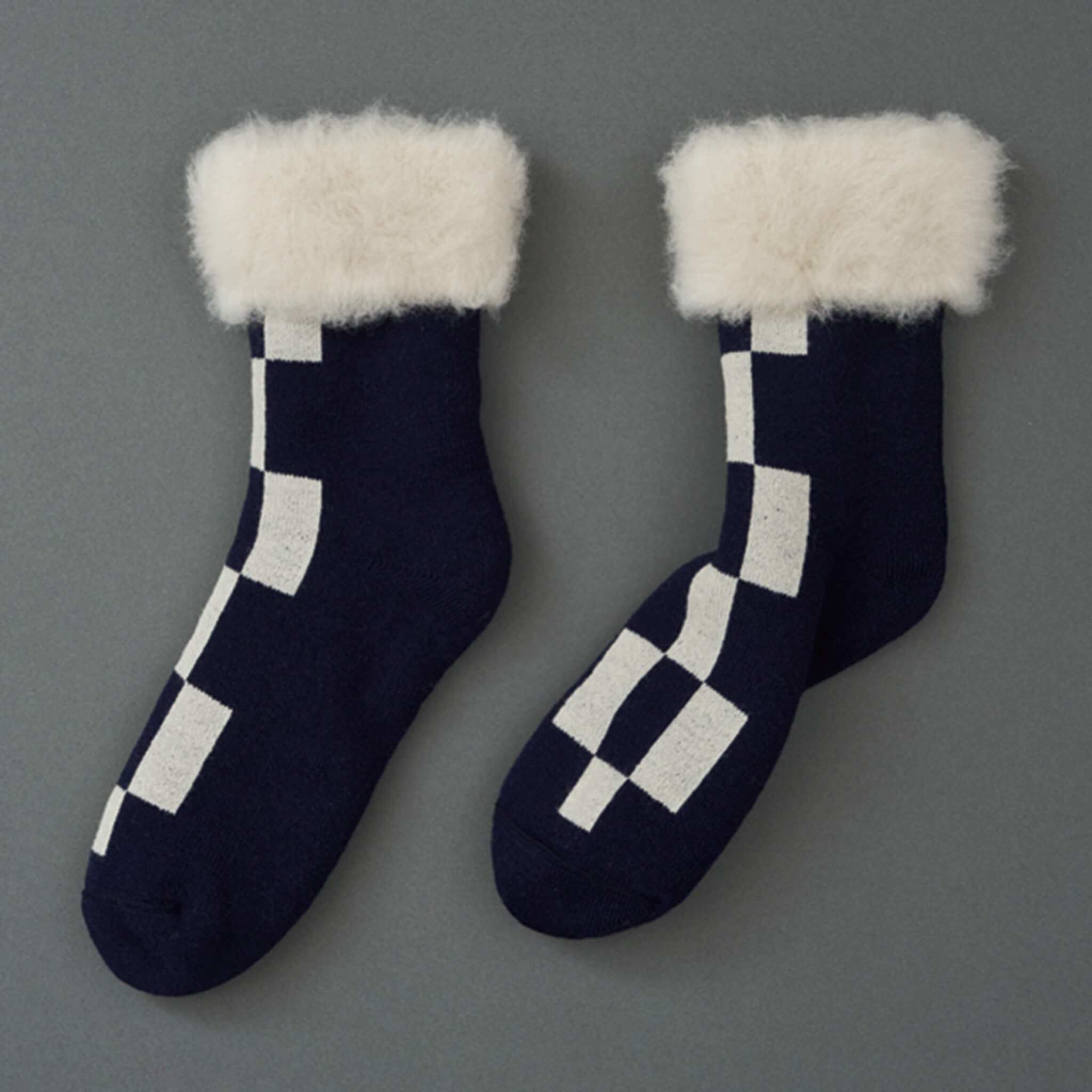 外側はメリヤス編み、中間はパイル編み、肌側は起毛の3重構造だからふかふかで足に優しいコージーな厚みになっています。