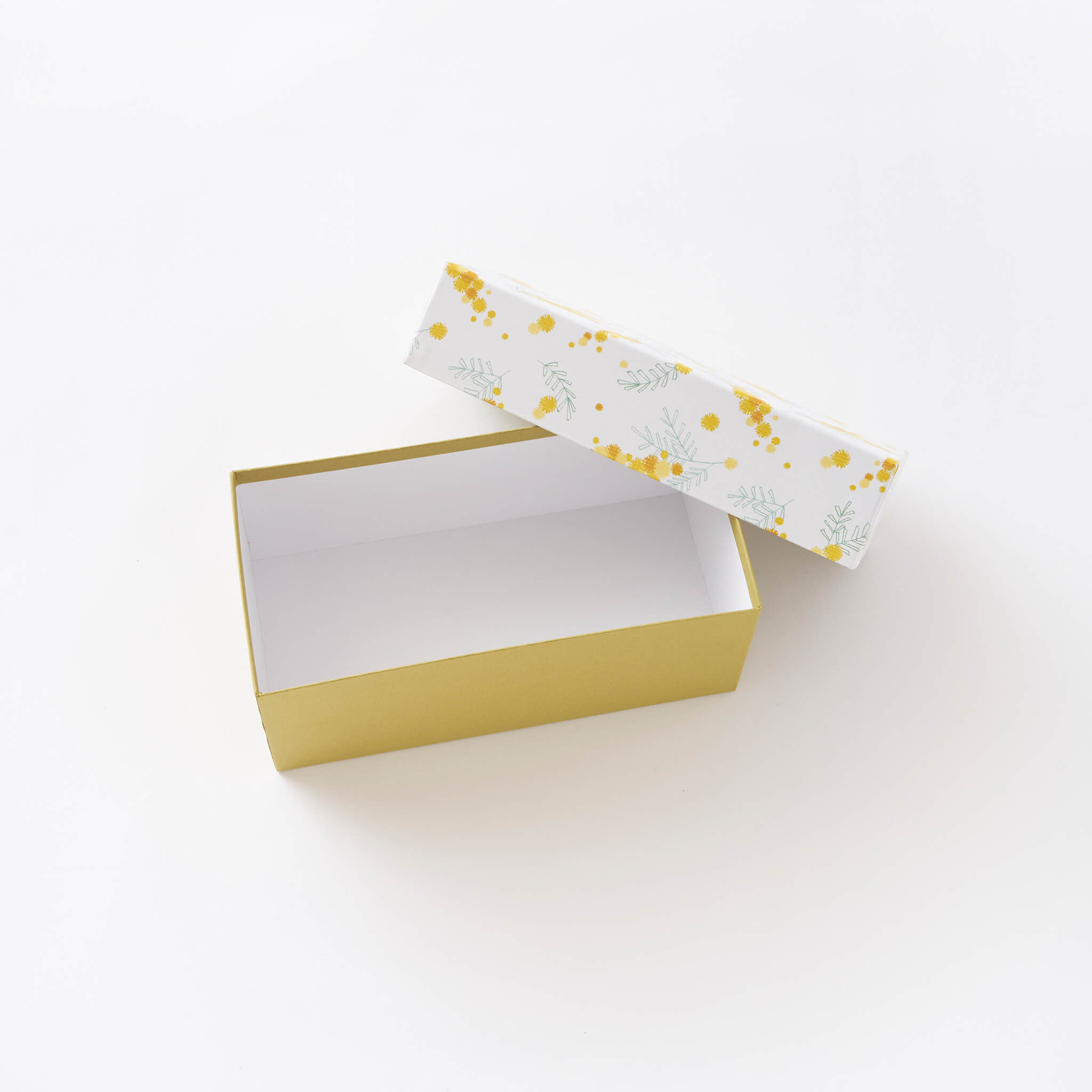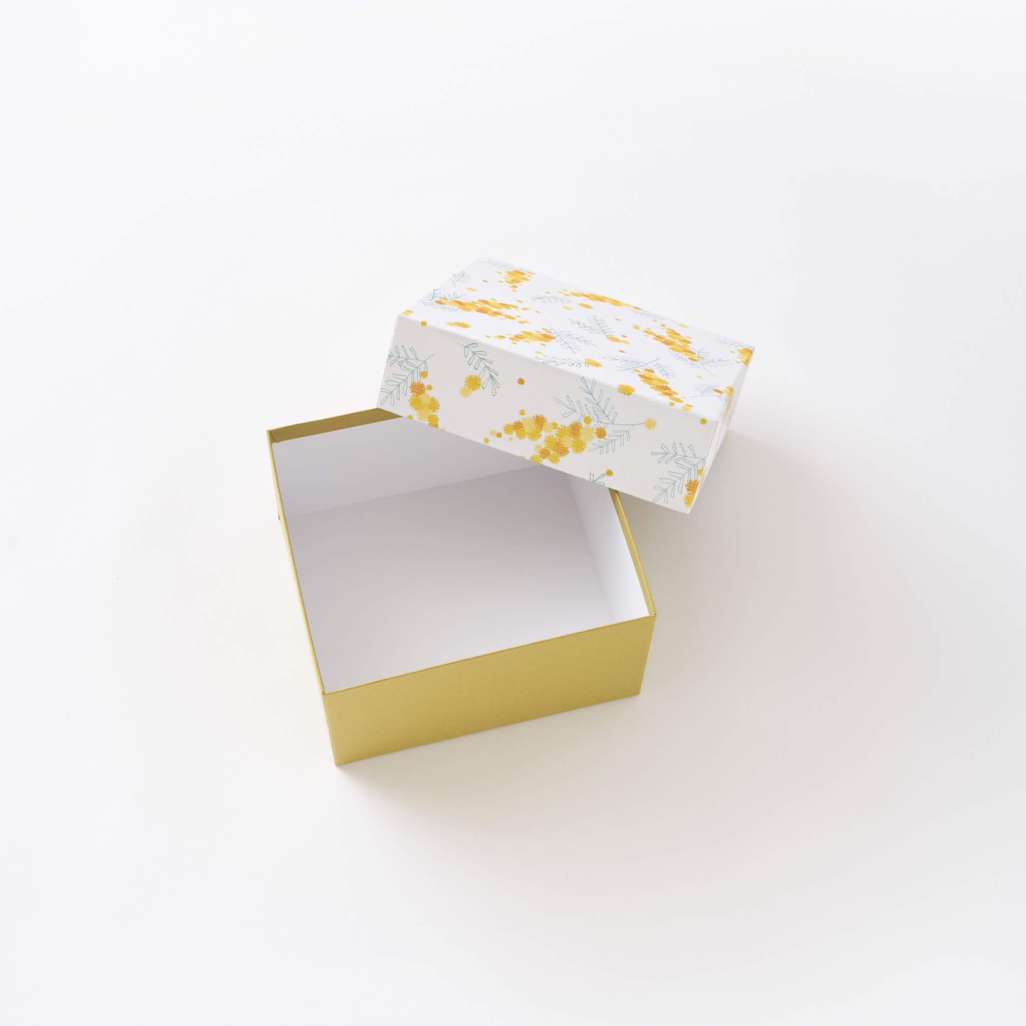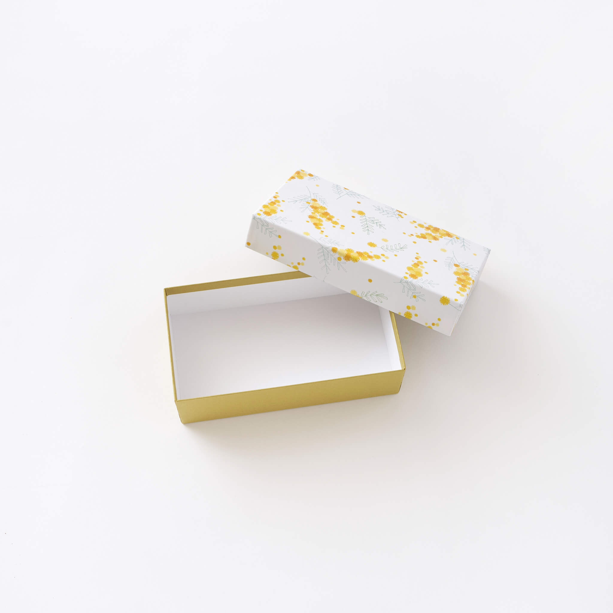 ミモザ柄が散りばめられたfromFらしい オリジナルギフトボックス