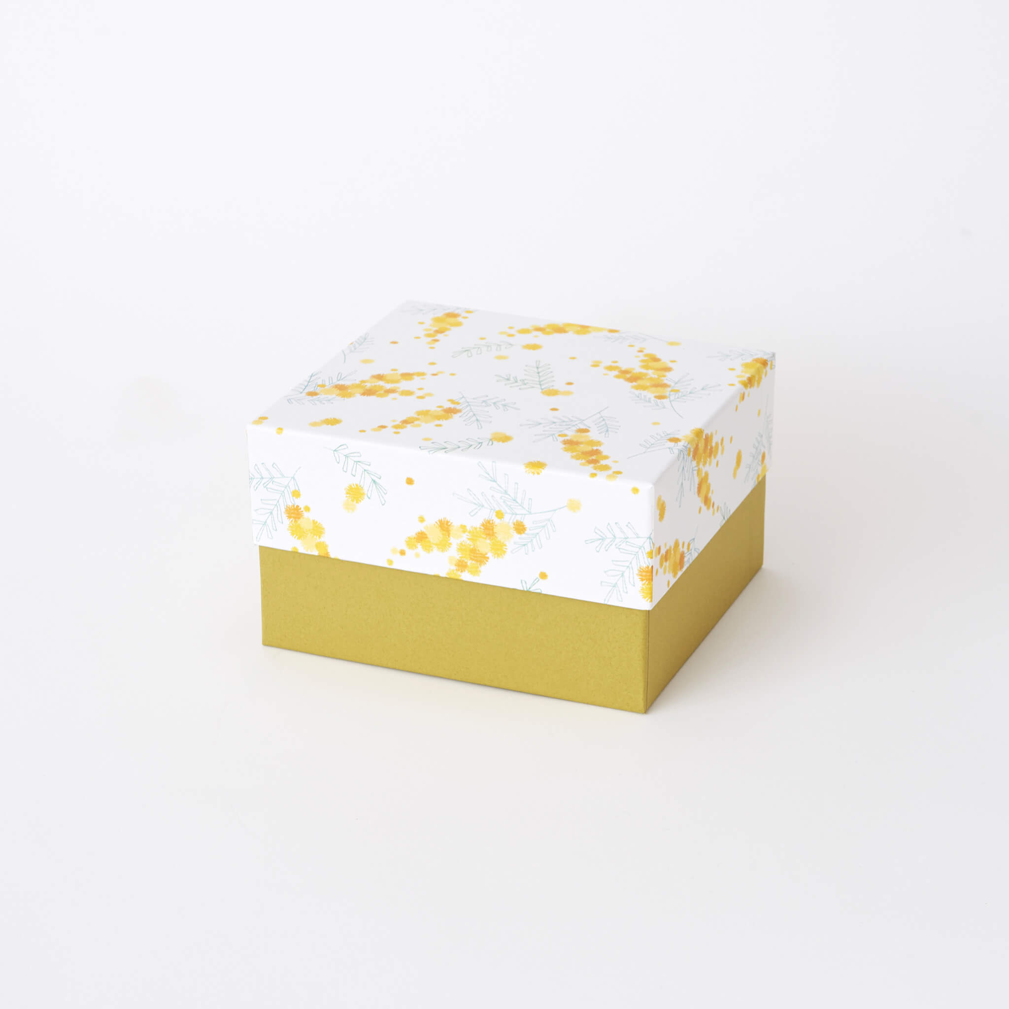 fromFらしい柔らかなミモザ柄が散りばめられた、デザイン性の高いギフトボックスの登場です。