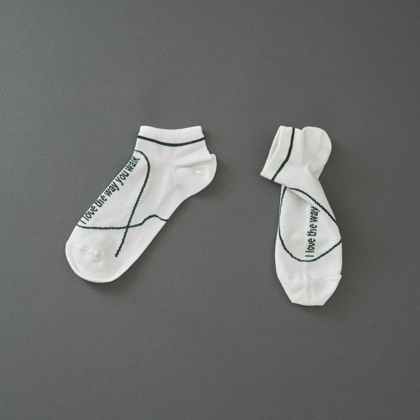 華やかなカラーはスニーカーやローファーからチラっと見えコーディネートのポイントになります。