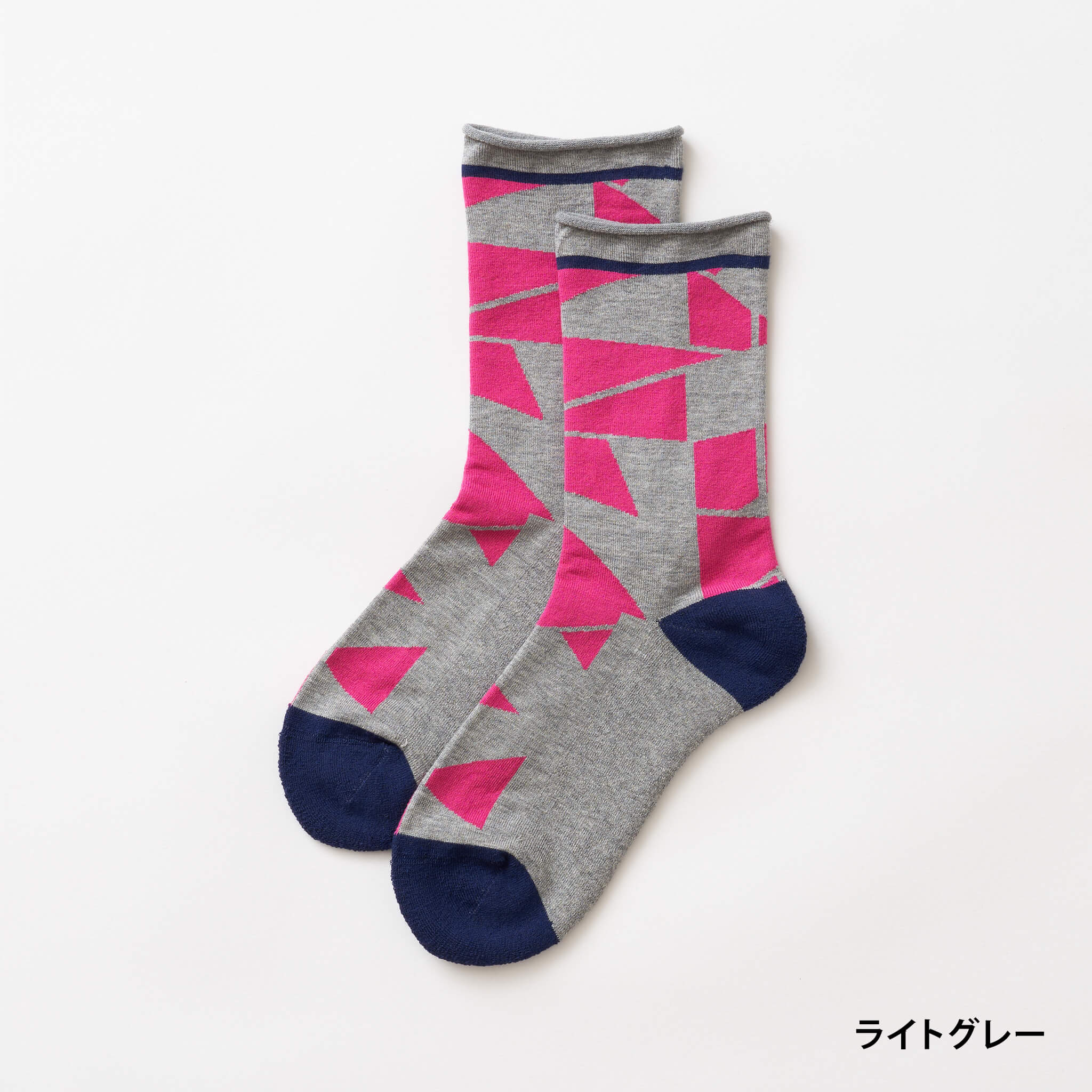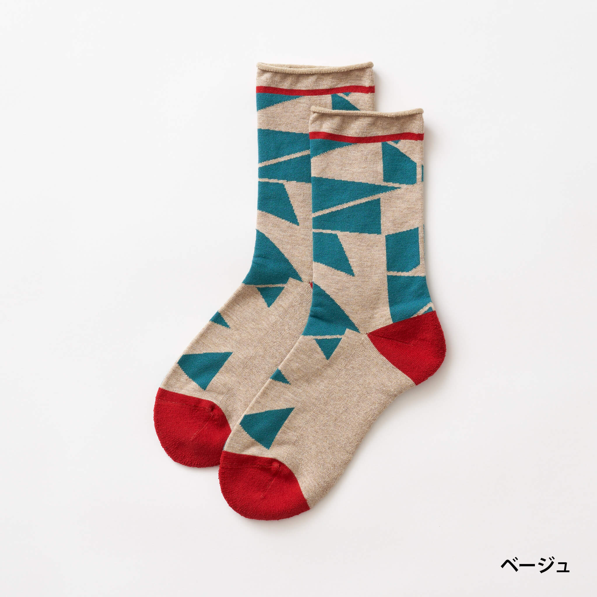 北欧のシンボルツリーである白樺を幾何学模様に落とし込み、普段使いしやすいデザインの靴下です。