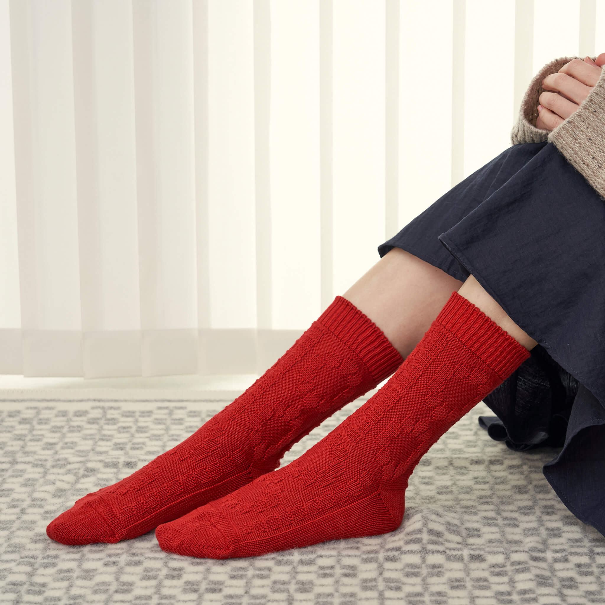 ドットの模様編みが可愛いfromFらしいデザインとサラっとしたコットンベースの素材が特長の通年履ける靴下です。